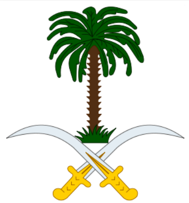 The coat of arms for Saudi Arabia combined a palm tree above its traditional crossed swords. |
